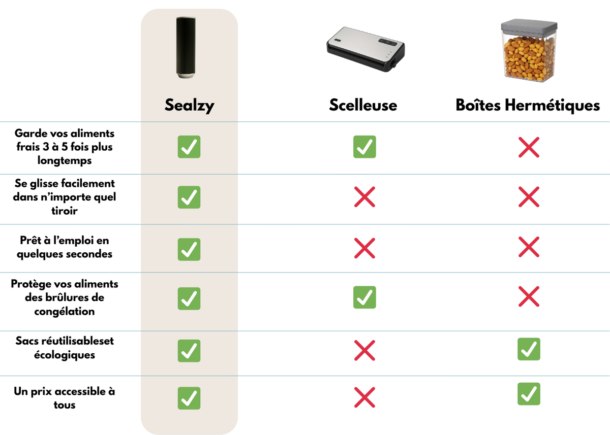 Je suis bluffée 🤩 ! En 5 secondes mes aliments sont bien scellés, je garde tout frais plus longtemps et je jette beaucoup moins. En plus, les sacs sont lavables, c’est top pour ne pas gaspiller et réutiliser. Une vraie petite révolution dans ma cuisine !